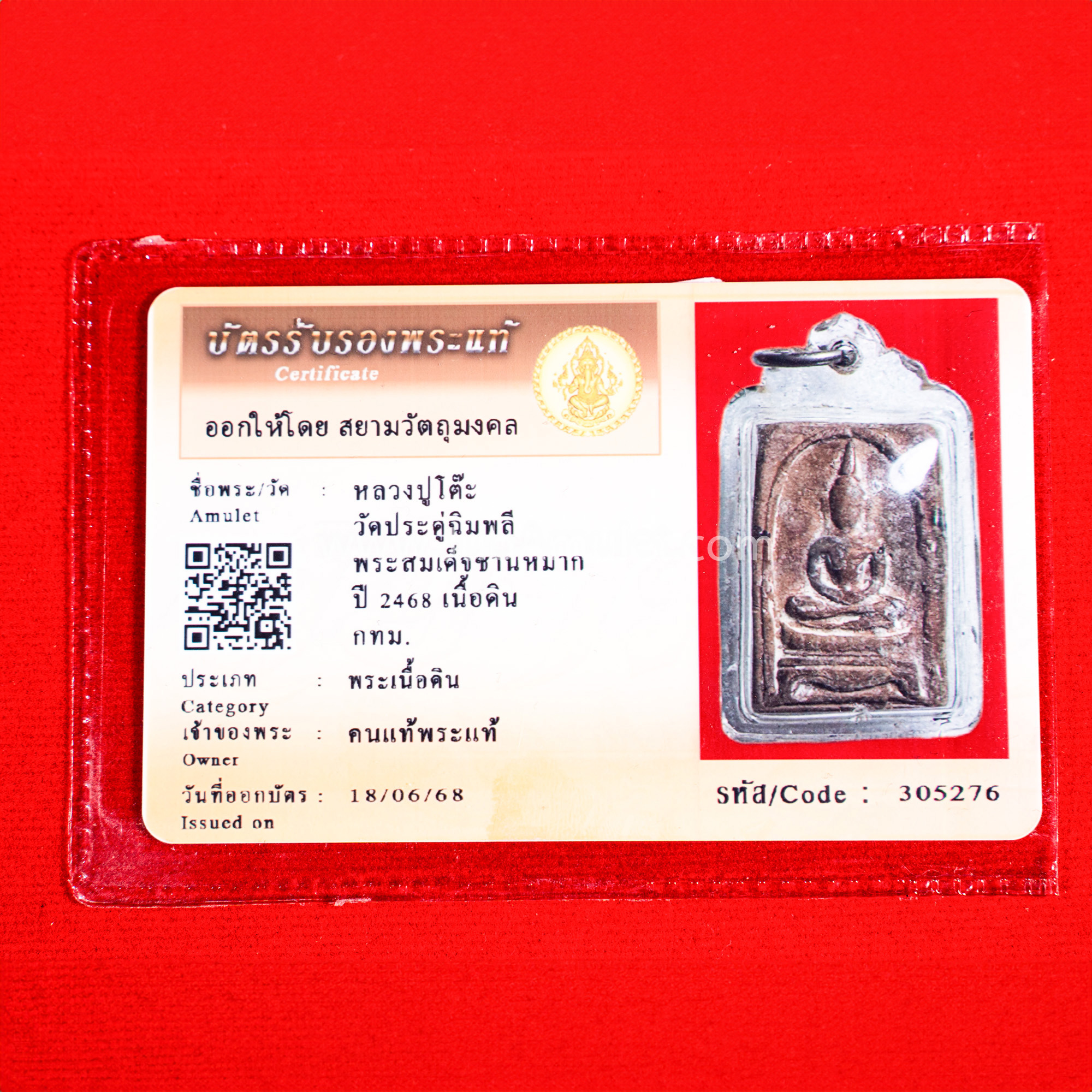 หลวงปูโต๊ะ สมเด็จชานหมาก ปี 2468 เนื้อดิน (พระเปล่า) มีบัตรรับรอง