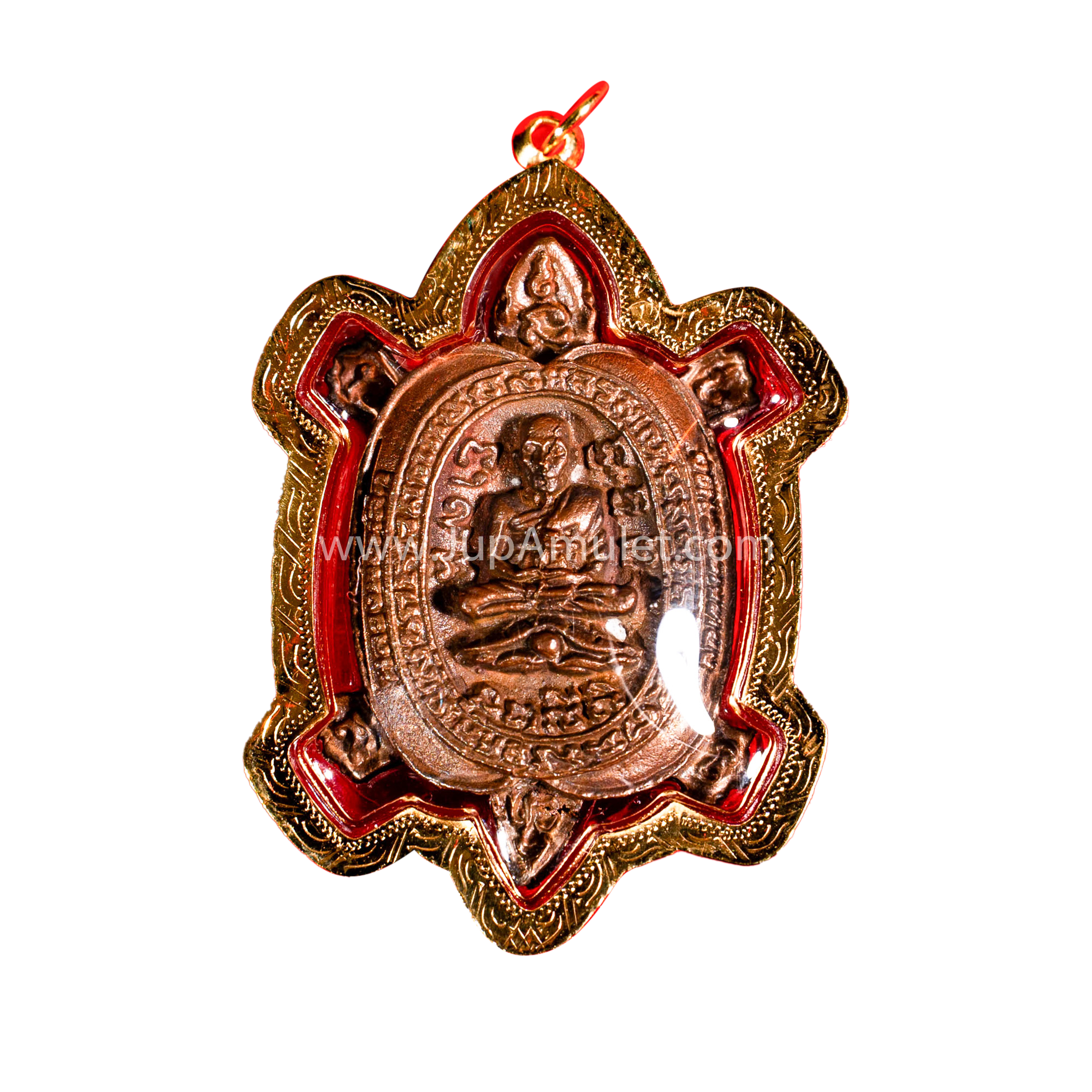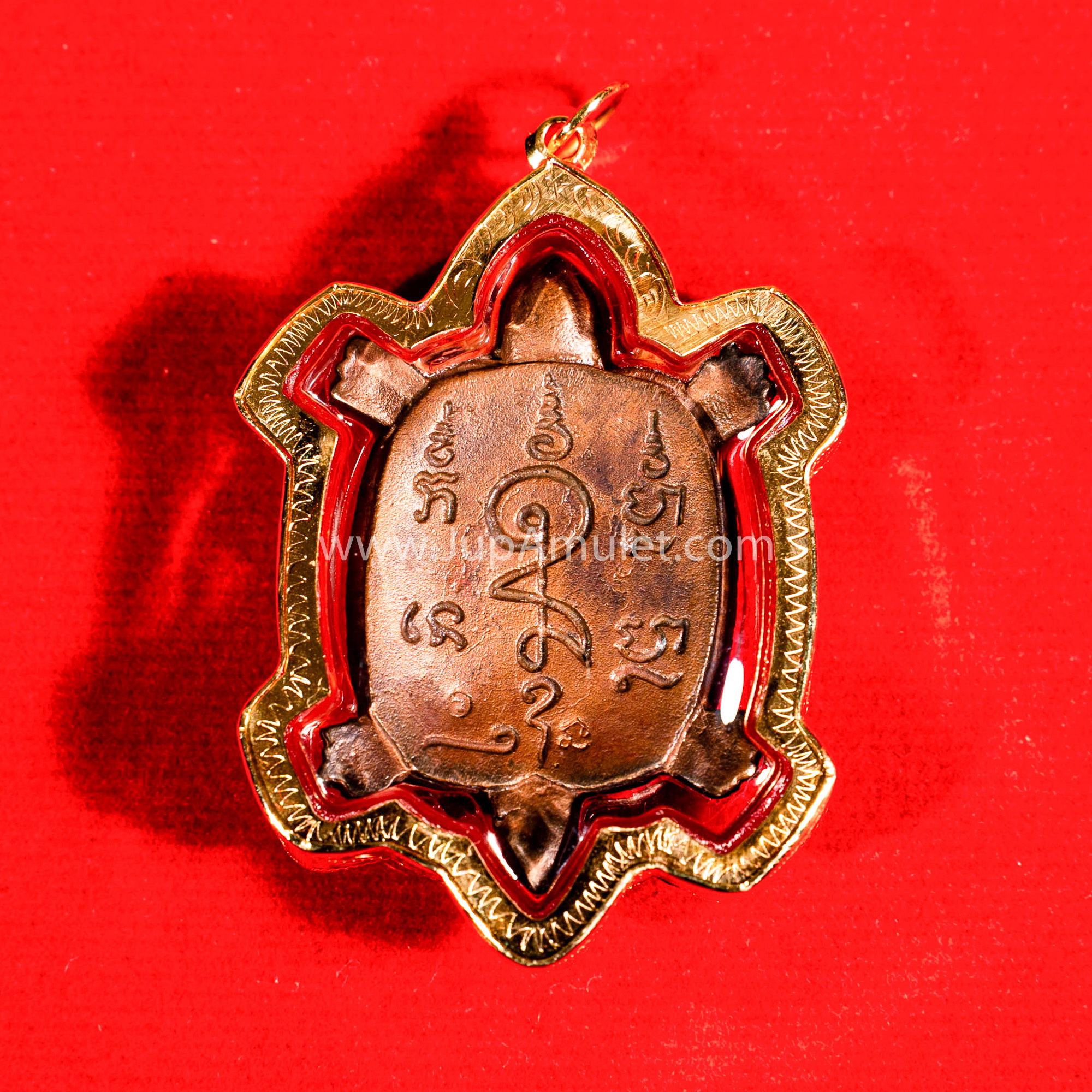 หลวงปู่หลิว รุ่นเต่าหล่อสุขใจ ปี 2537 เนื้อทองแดง พร้อมเลี่ยมกรอบทองคำแท้ ธรรมดา