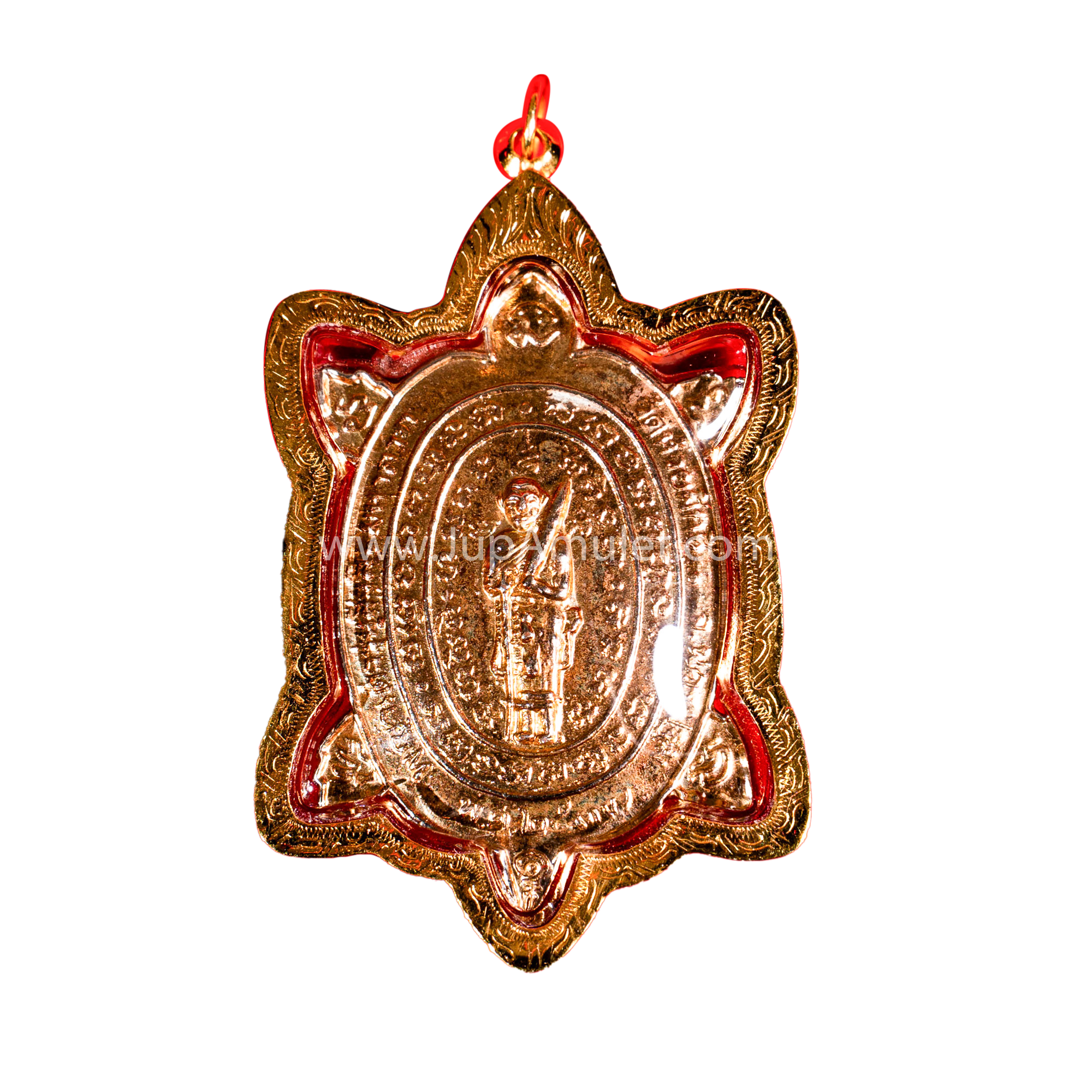 หลวงปู่หลิว เหรียญเต่า รุ่นสิวลี ปี 2537 เนื้อกะไหล่ทอง พร้อมเลี่ยมกรอบทองคำแท้ ธรรมดา