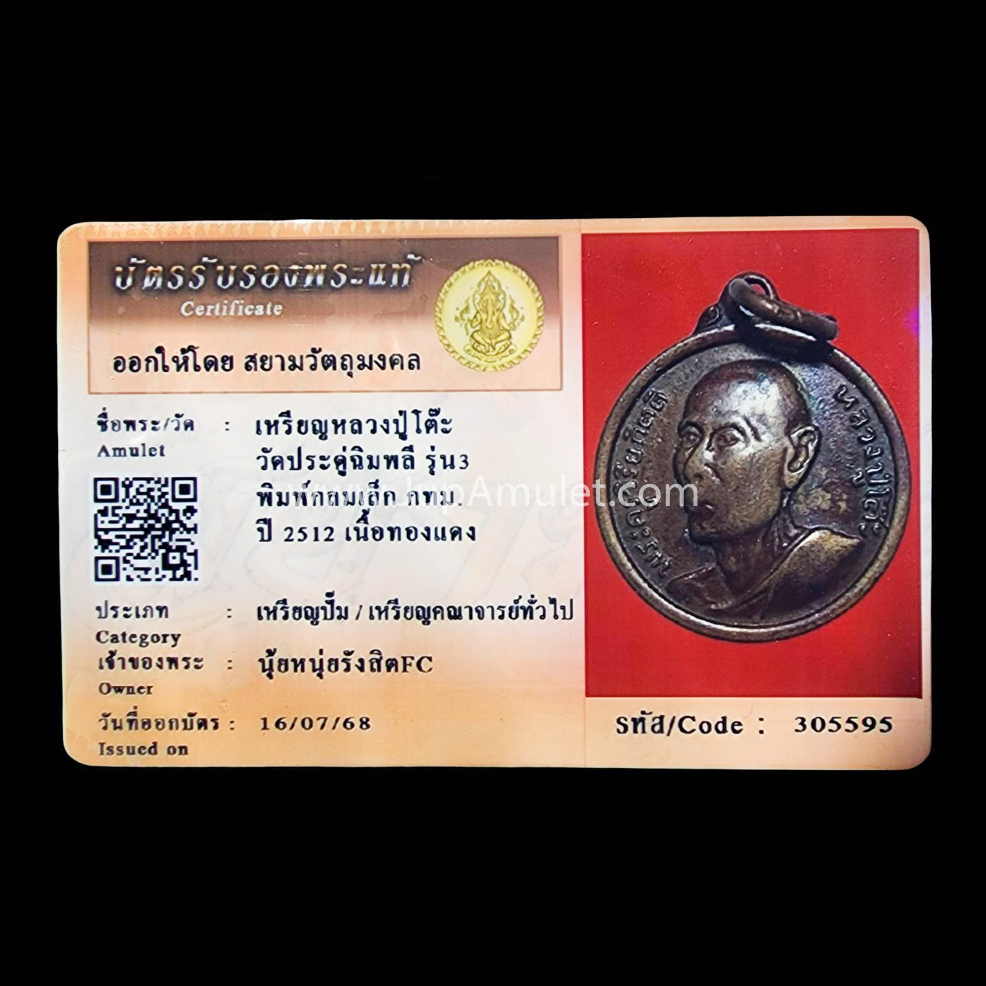 หลวงปู่โต๊ะ รุ่น 3 กลมเล็ก ปี 2512 เนื้อทองแดง