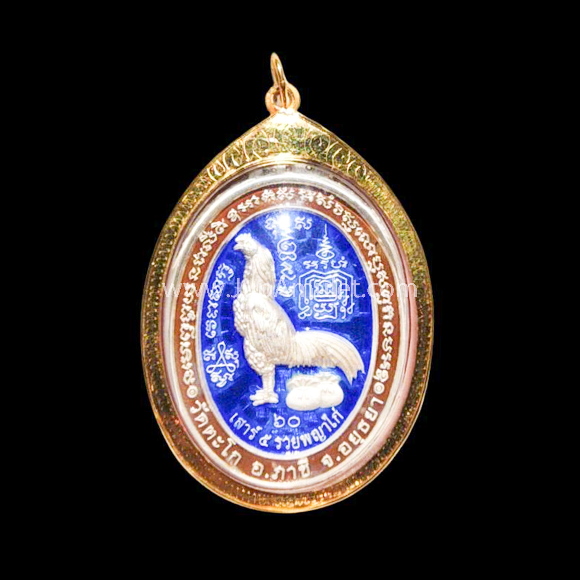 หลวงพ่อรวย รุ่นพญาไก่เงิน ปี 2560 เนื้อเงินลงยาแดง