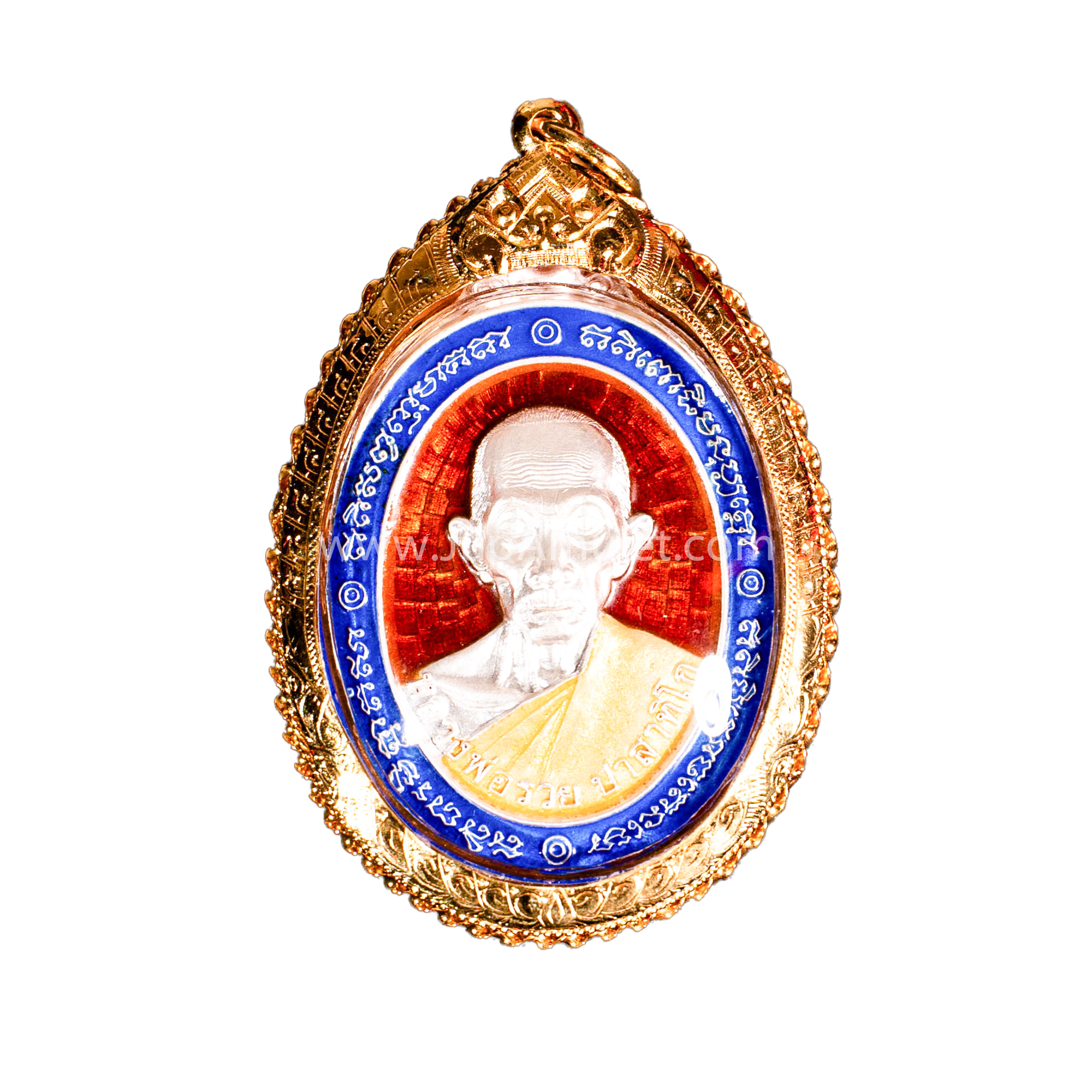 หลวงพ่อรวย รุ่นพญาไก่ ปี 2560 เนื้อเงิน ลงยาแดง พร้อมเลี่ยมกรอบทองคำแท้ หนา (เฉพาะค่าเลี่ยมกรอบตีเกลียว 16,000 บาท)