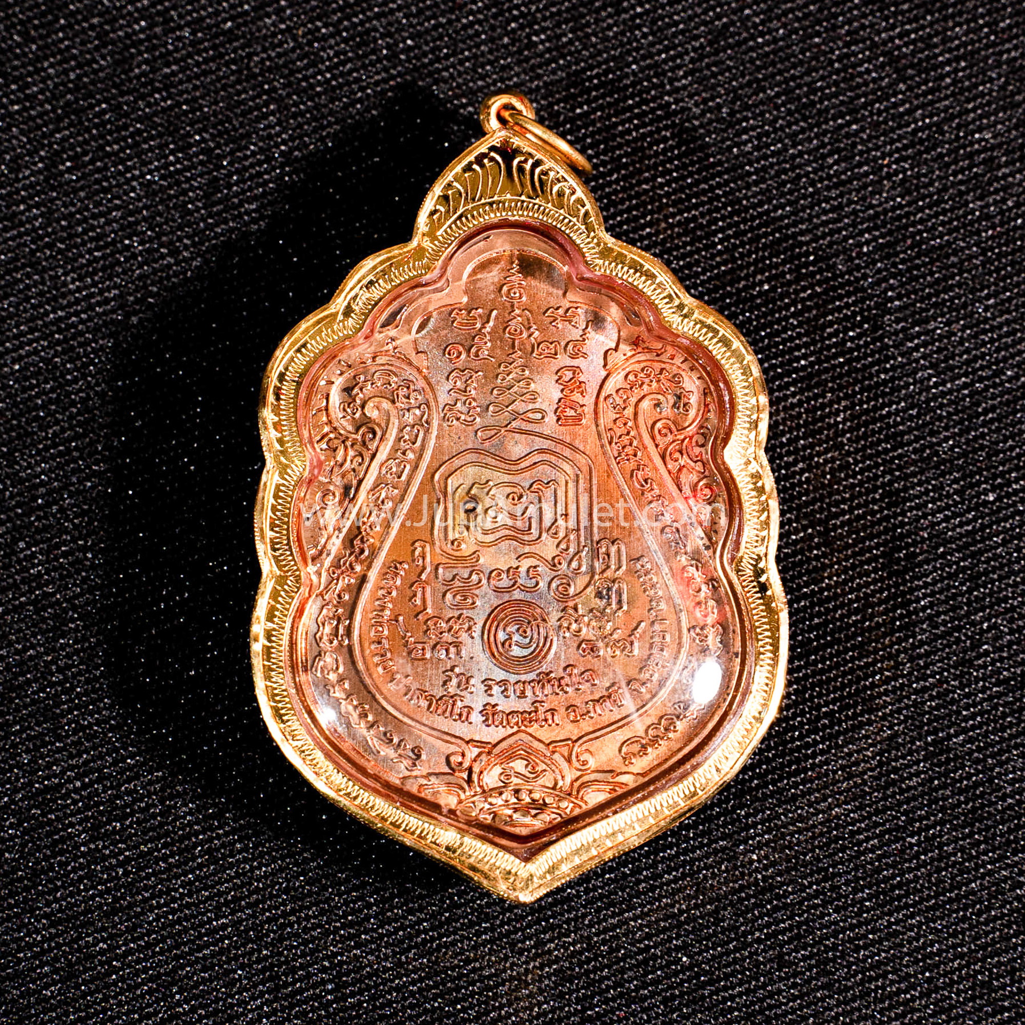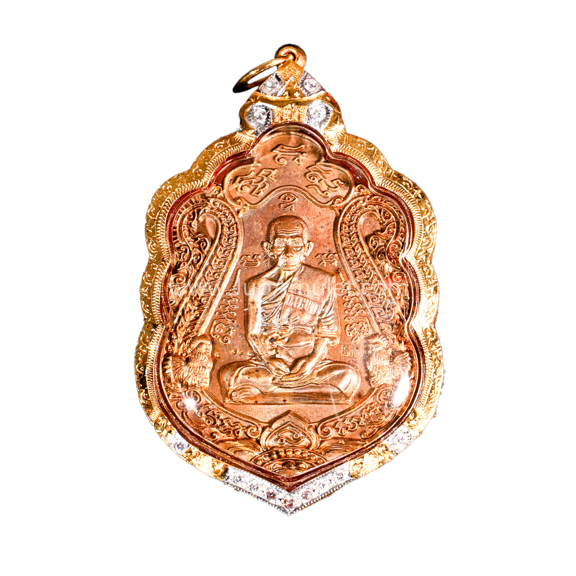 หลวงพ่อรวย รุ่นรวยทันใจ ปี 2557 เนื้อทองแดง พร้อมเลี่ยมกรอบทองคำแท้ ฝังเพชร CZ