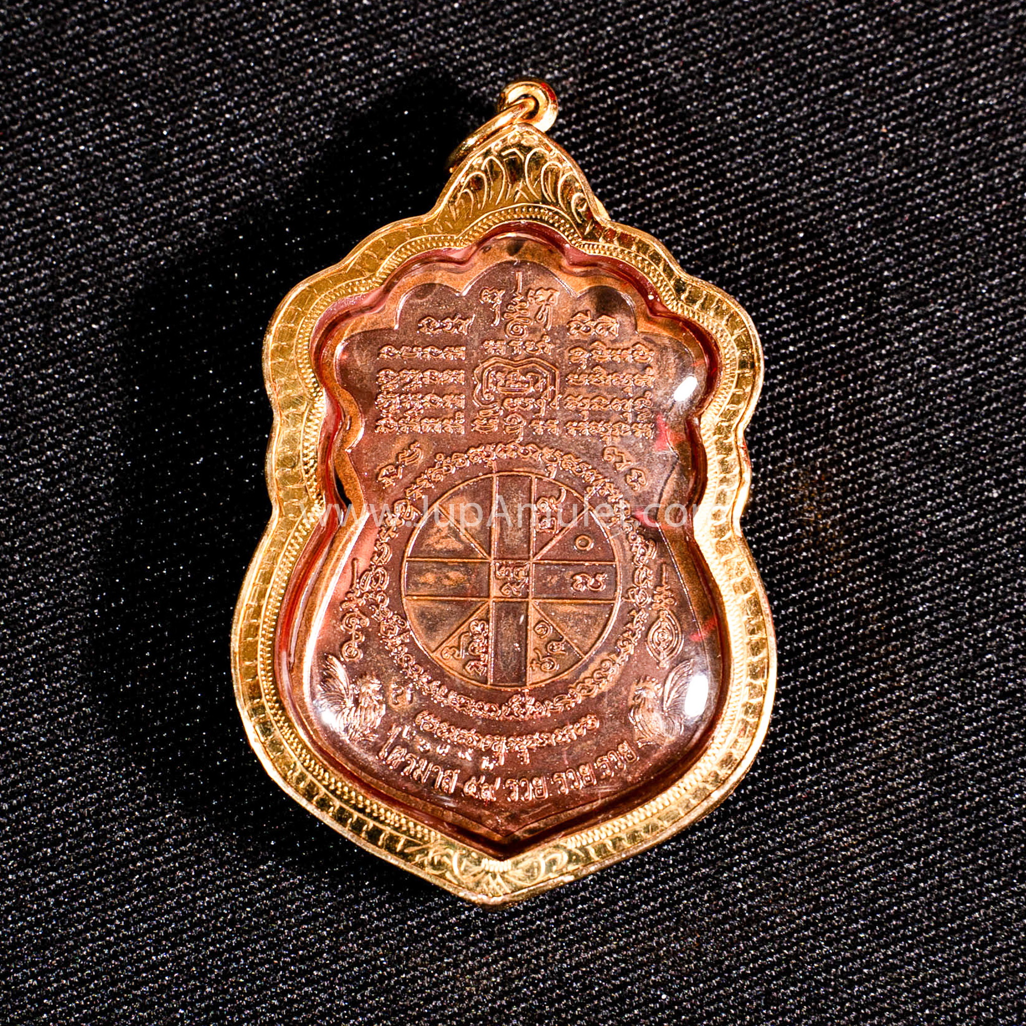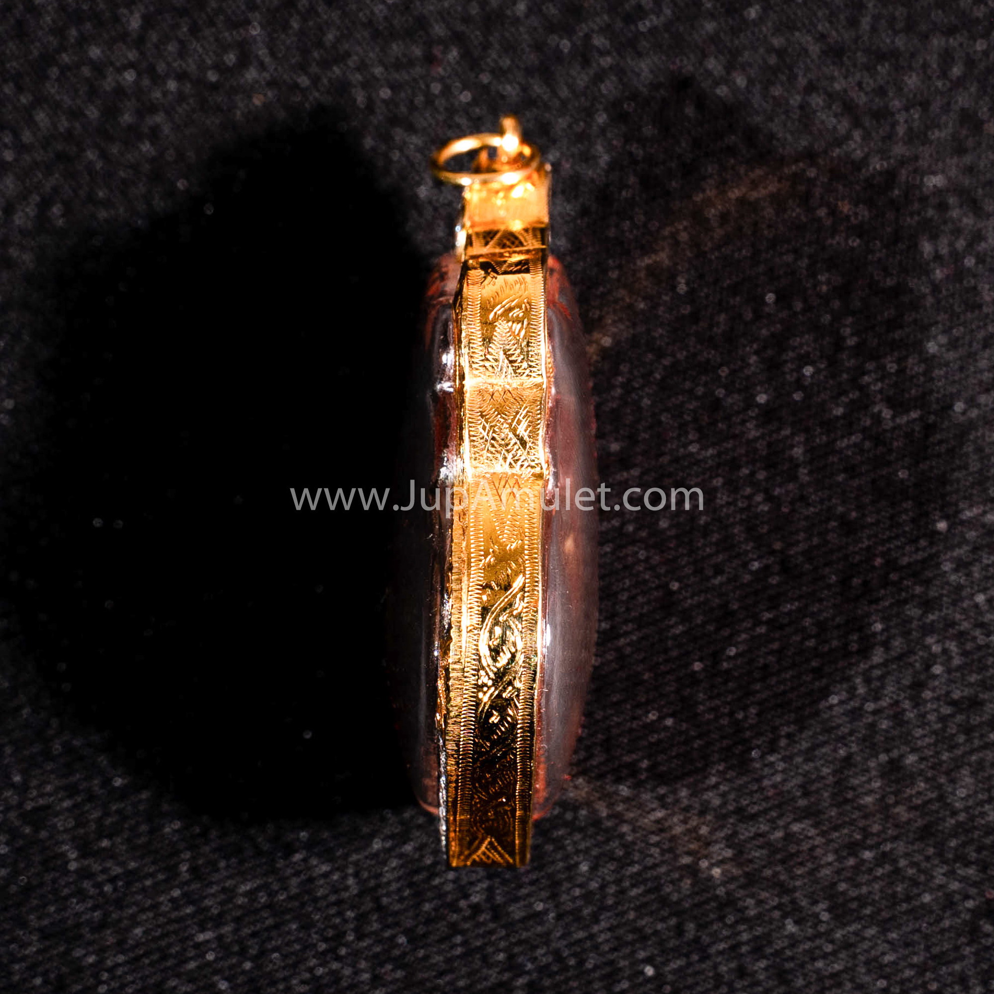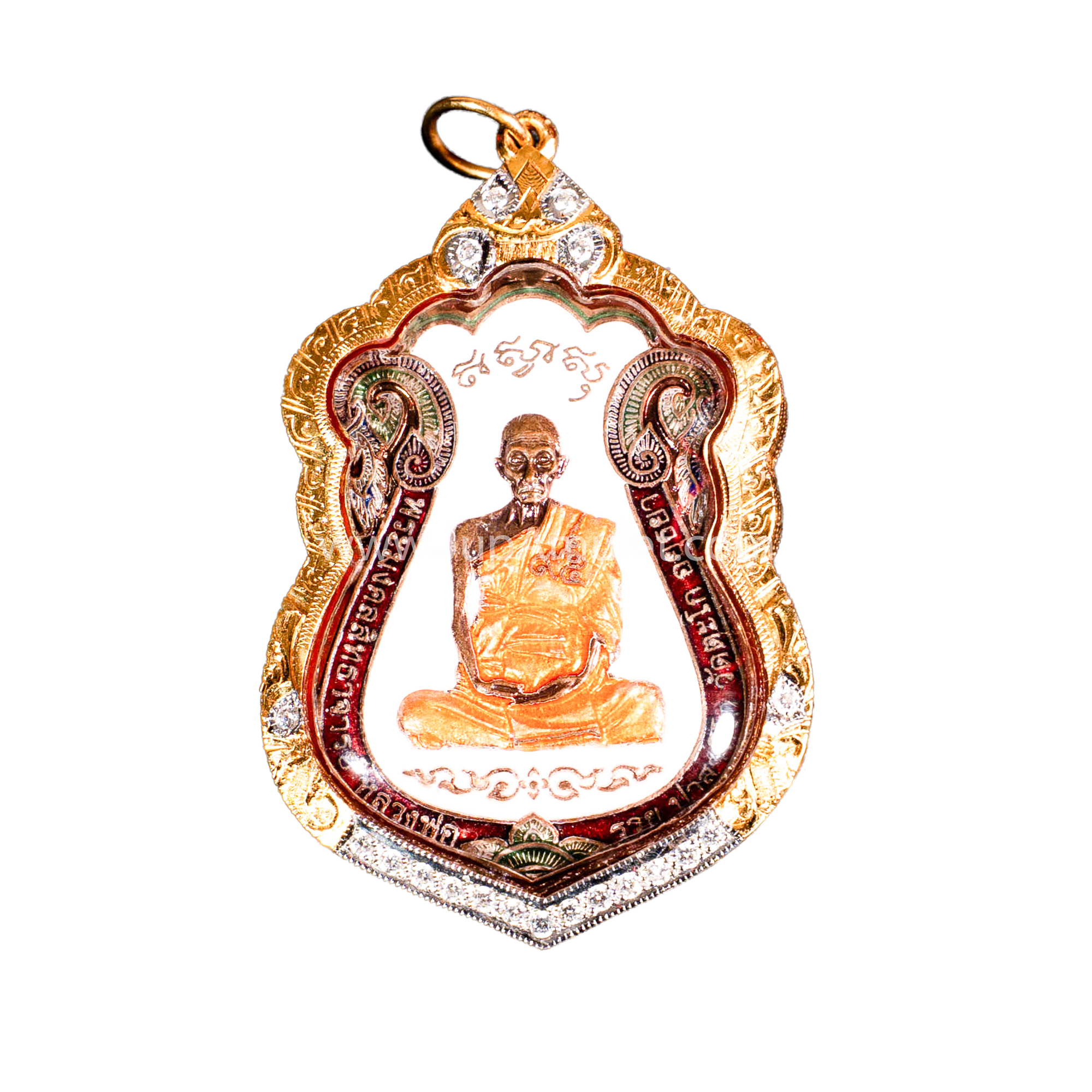 หลวงพ่อรวย รุ่นไตรมาสกรรมการ ปี 2559 เนื้อทองแดง ลงยาขาว พร้อมเลี่ยมกรอบทองคำแท้ ฝังเพชร CZ