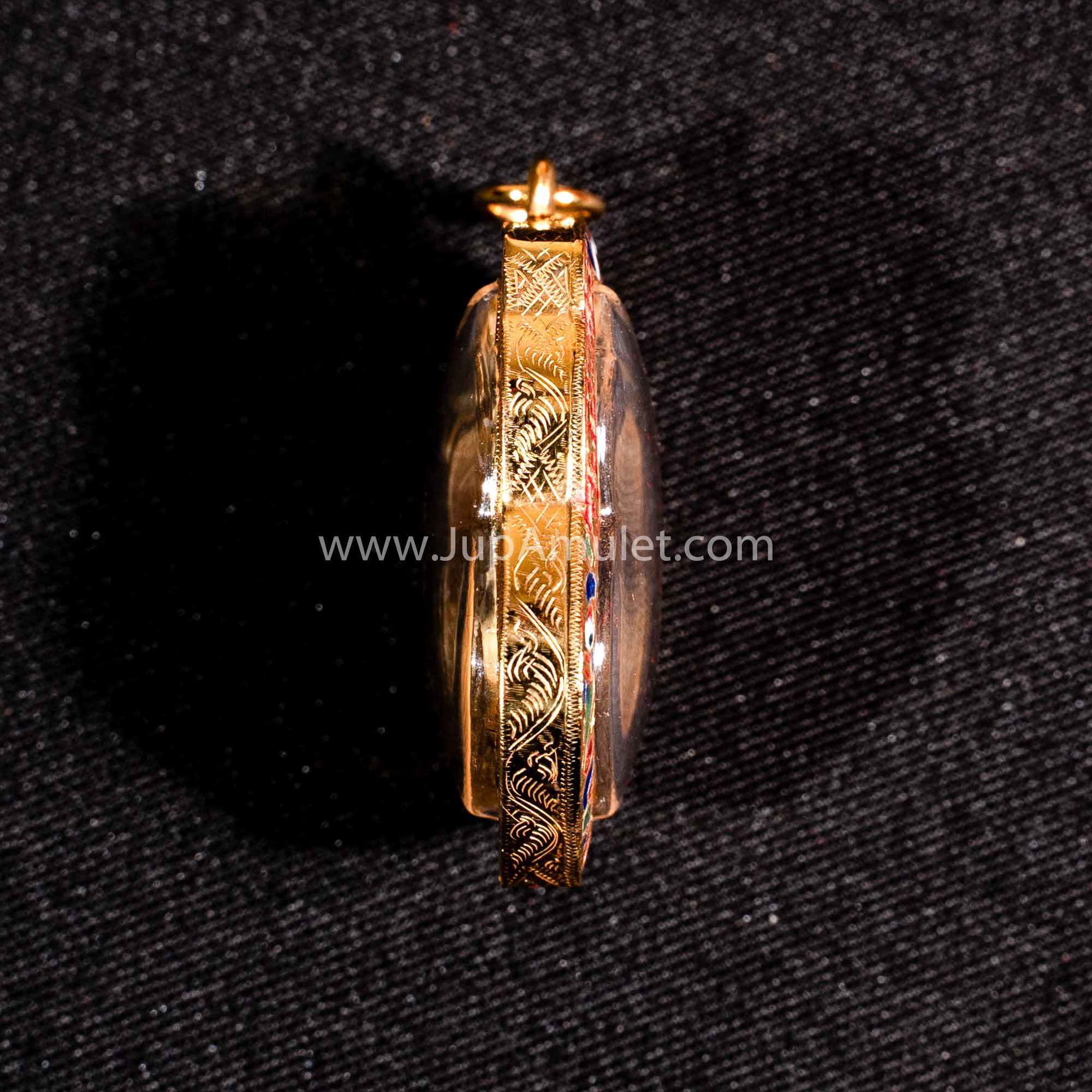 หลวงพ่อรวย เลื่อนสมณศักดิ์ ปี 2559 กะไหล่ทอง ลงยาฟ้า พร้อมเลี่ยมกรอบทองคำแท้ ลงยาสุโขทัย