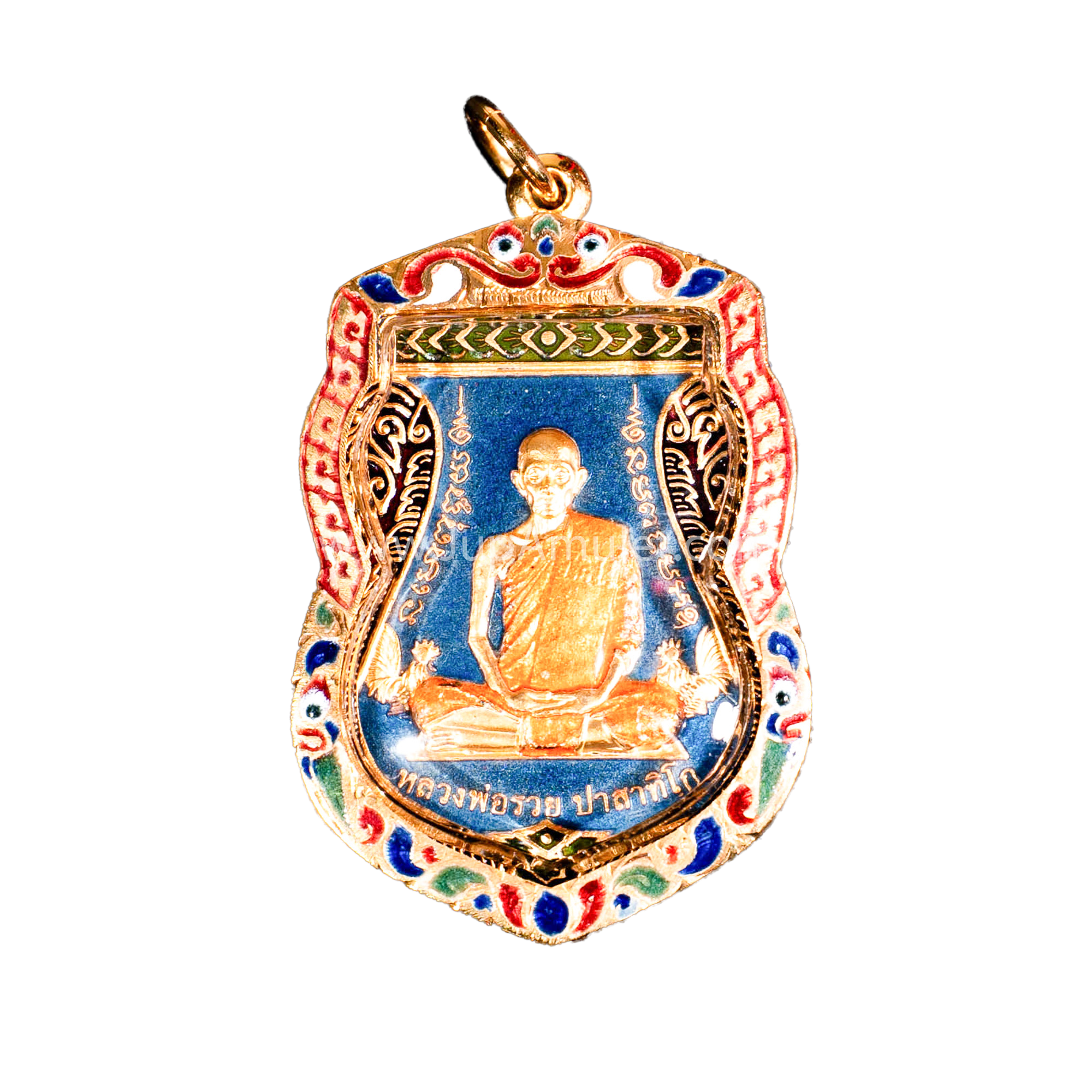 หลวงพ่อรวย เลื่อนสมณศักดิ์ ปี 2559 กะไหล่ทอง ลงยาฟ้า