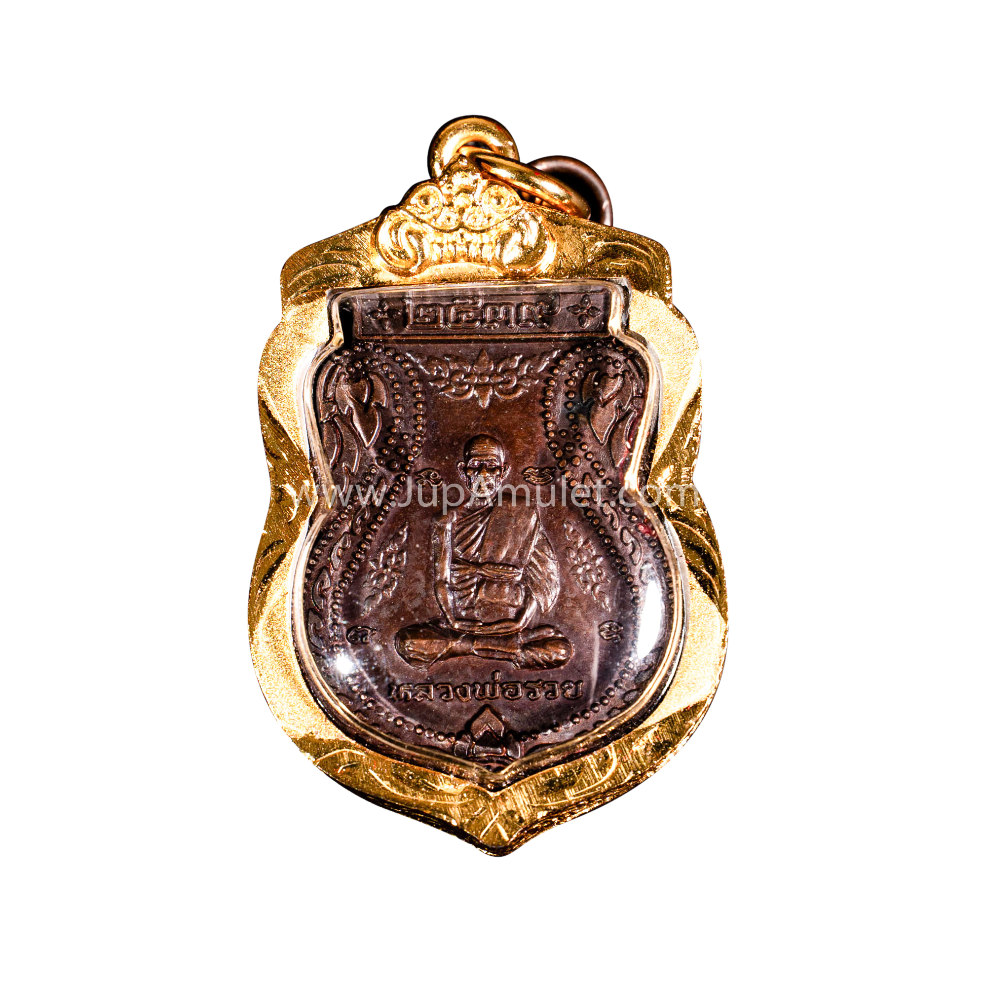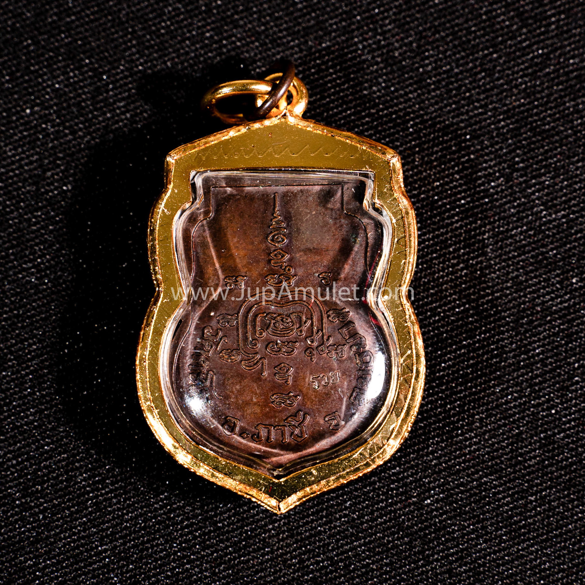 หลวงพ่อรวย เหรียญเสมา ปี 2539 เนื้อทองแดง พร้อมเลี่ยมกรอบทองคำไม่แท้