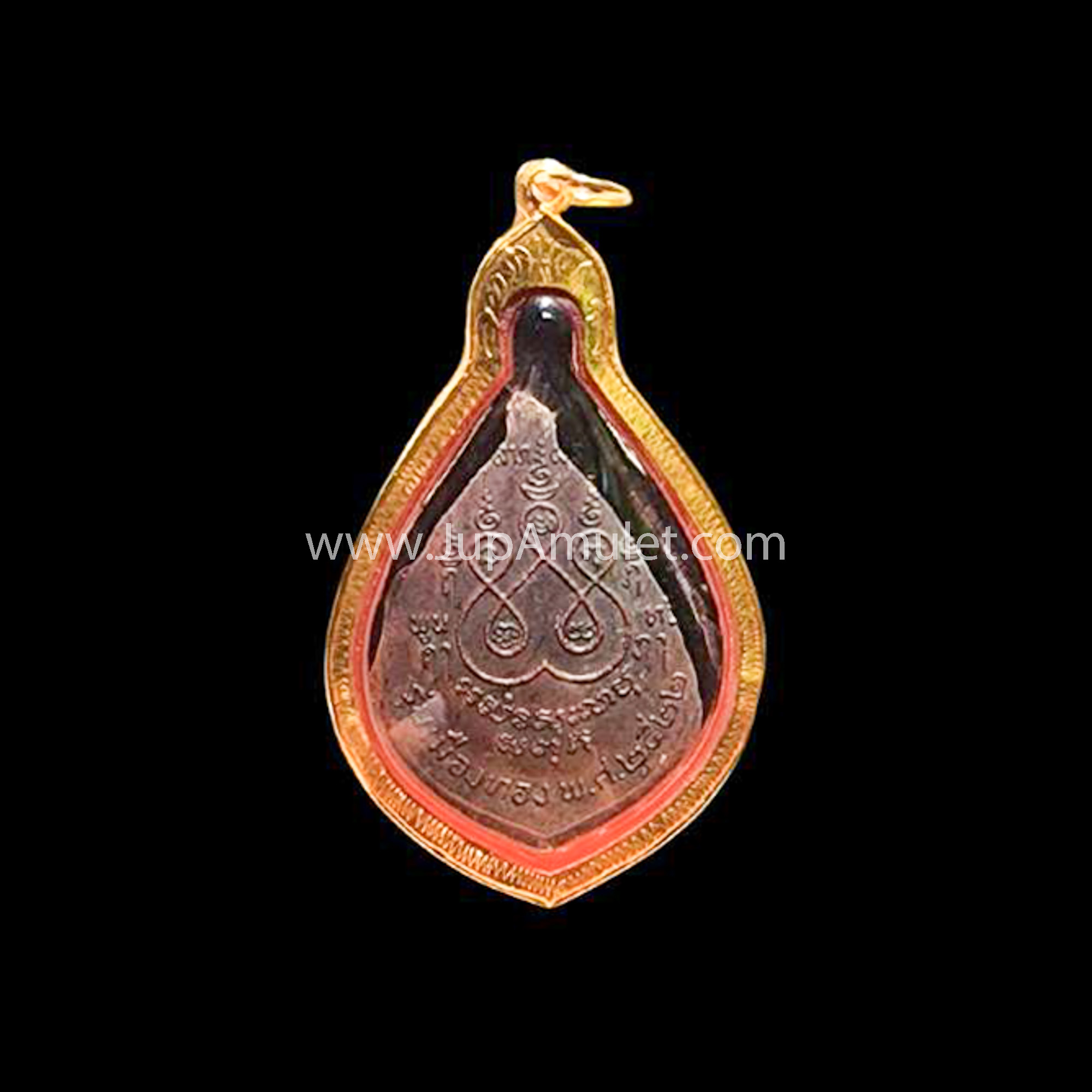 - ลักษณะ: เป็นเหรียญทรงหยดน้ำ (พิมพ์หยดน้ำ) ด้านหลังเป็นยันต์ตะกร้อ