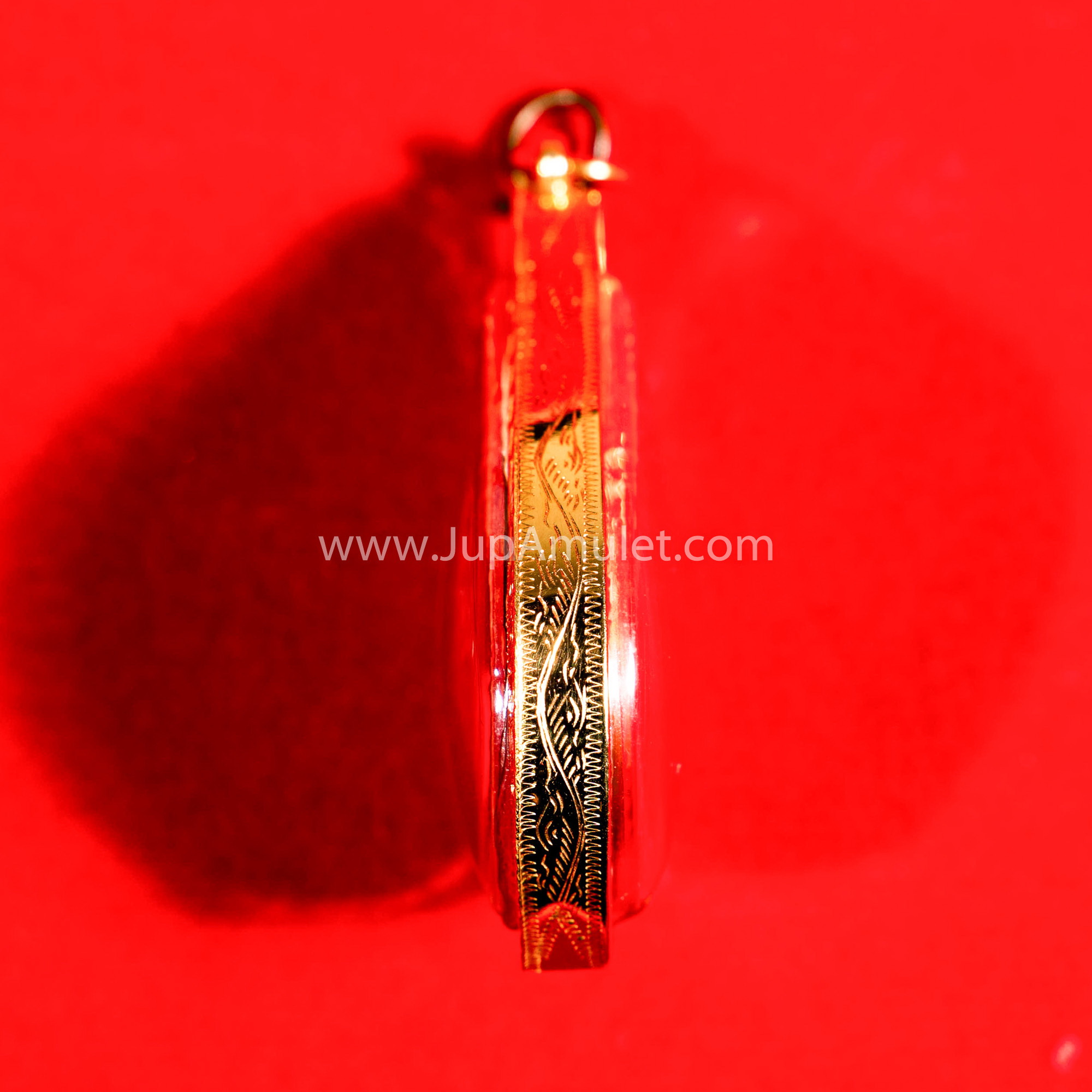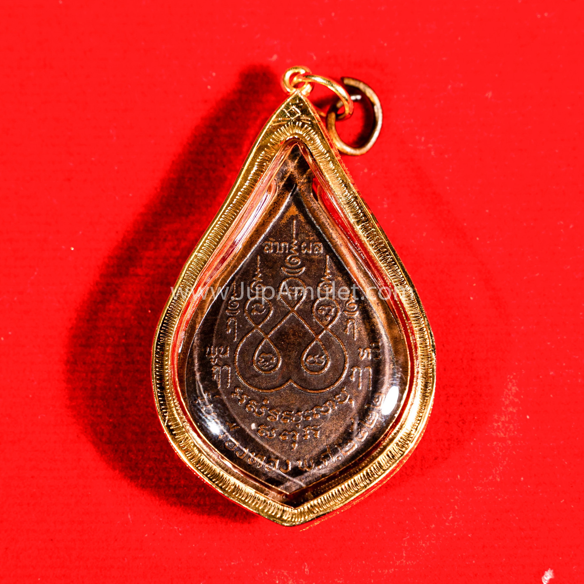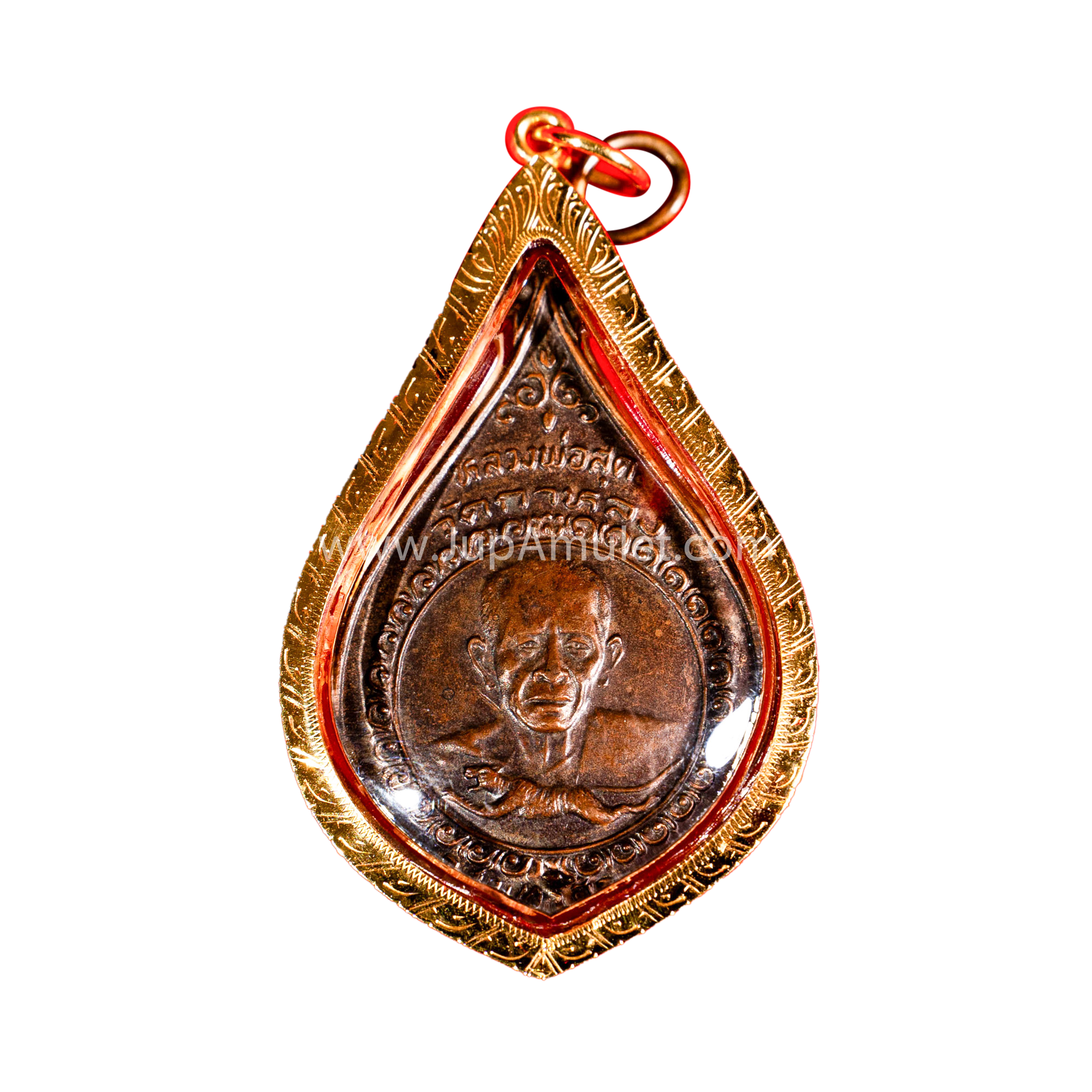 หลวงพ่อสุด เหรียญหยดน้ำ รุ่นเมืองทอง ปี 2522 เนื้อทองแดง พร้อมเลี่ยมกรอบทองคำแท้ ธรรมดา