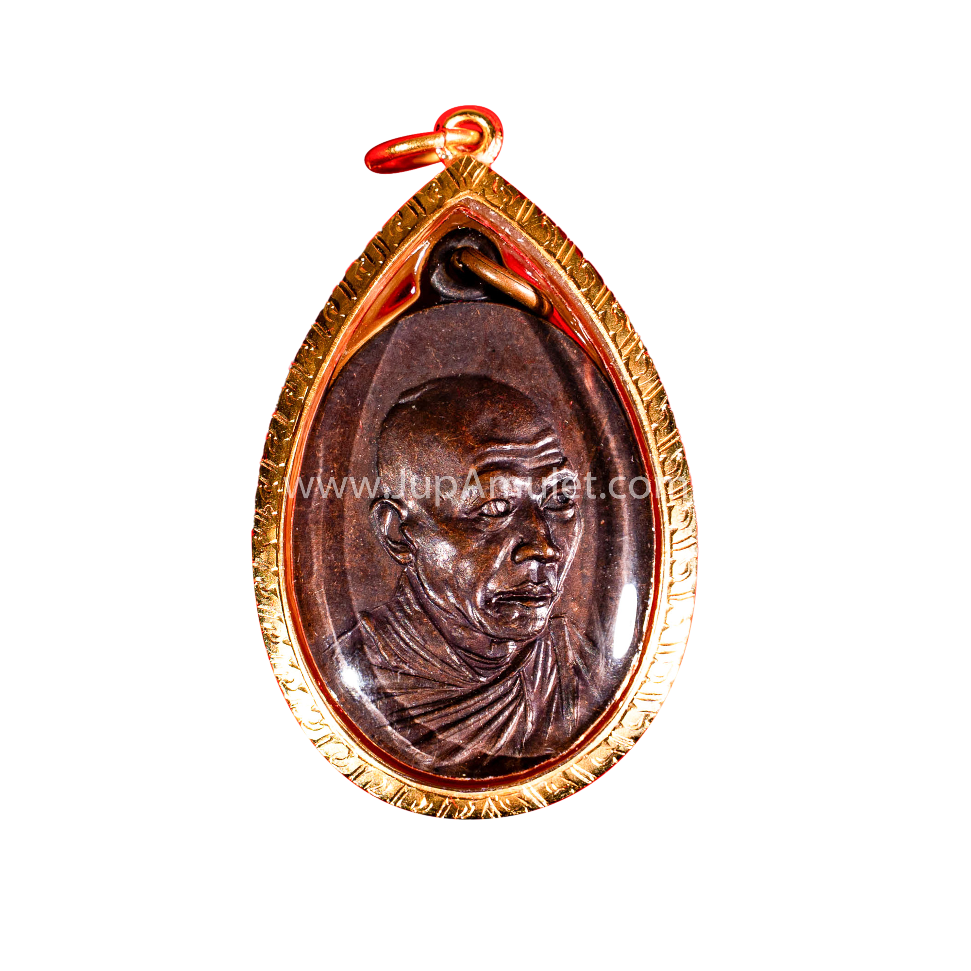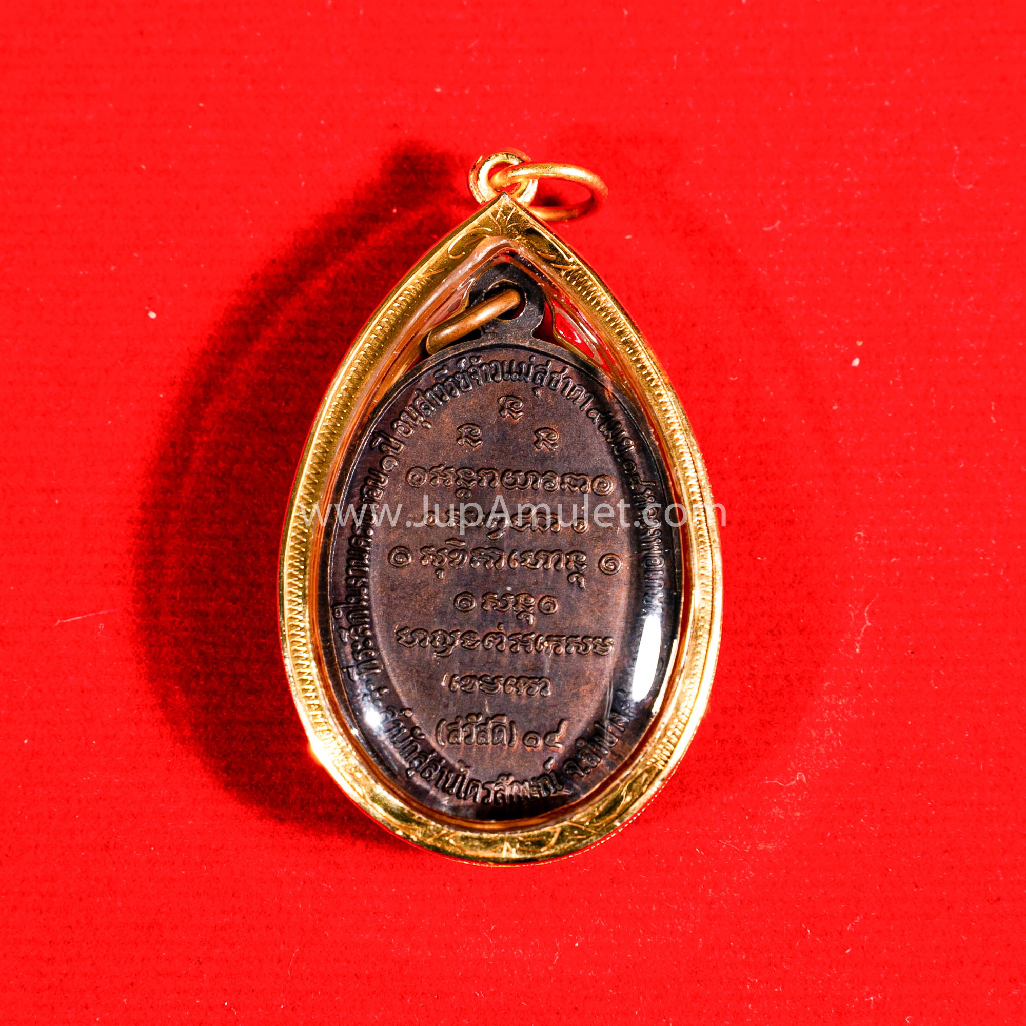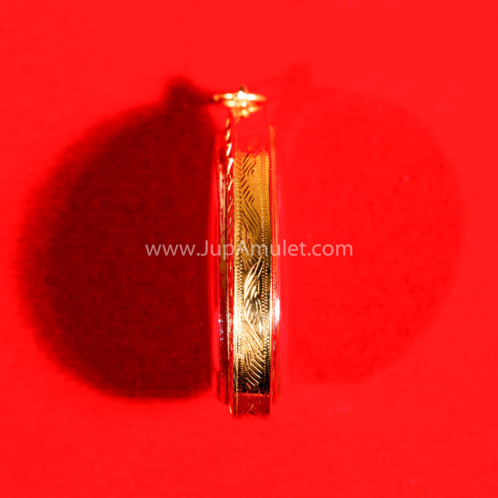 หลวงพ่อเกษม รุ่นกิ่งไผ่ ปี 2518 เนื้อทองแดง พร้อมเลี่ยมกรอบทองคำแท้ ธรรมดา