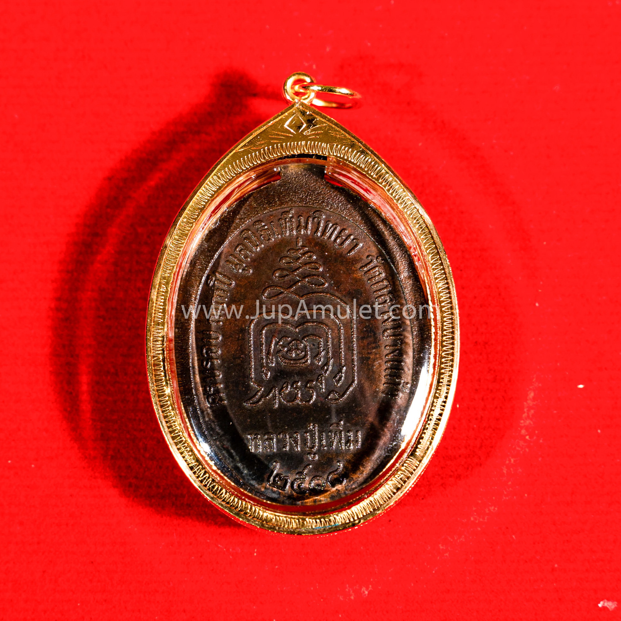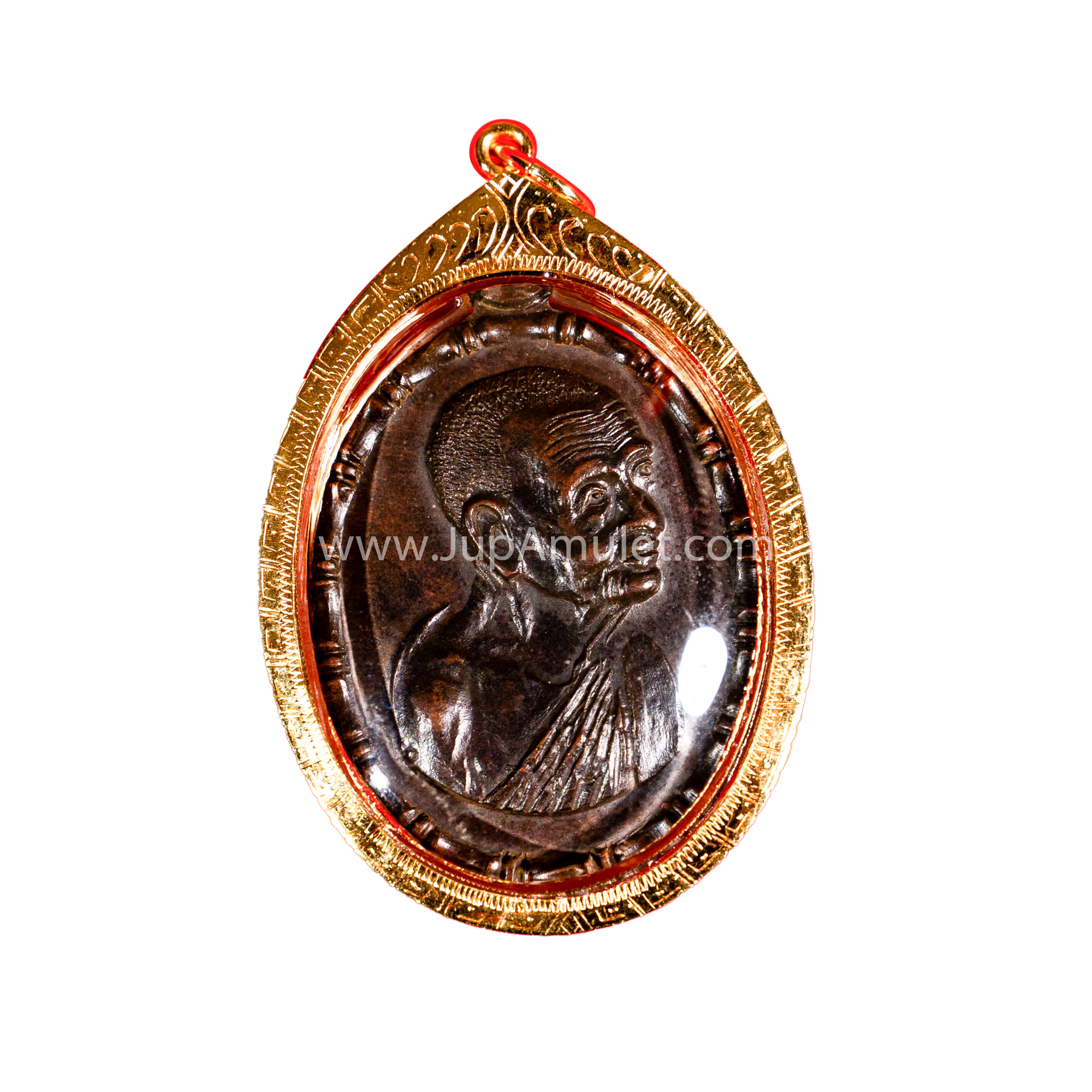 หลวงพ่อเพิ่ม วัดกลางบางแก้ว พิมพ์ปล้องอ้อยใหญ่ ปี 2518 เนื้อทองแดงรมดำ พร้อมเลี่ยมกรอบทองคำแท้ ธรรมดา
